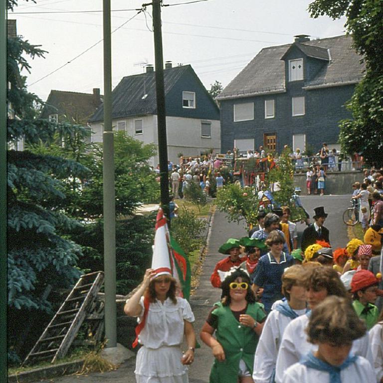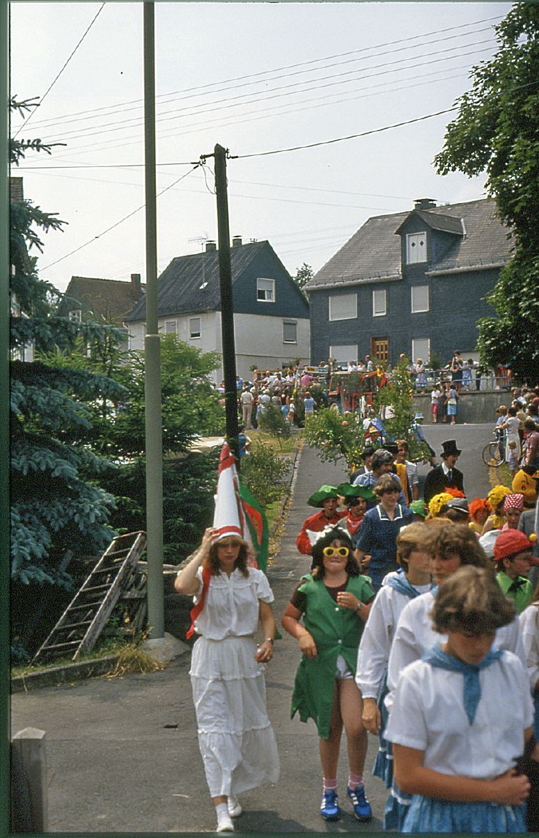 1983 - Festzug zum Jubiläum der Feuerwehr durch Flammersbach