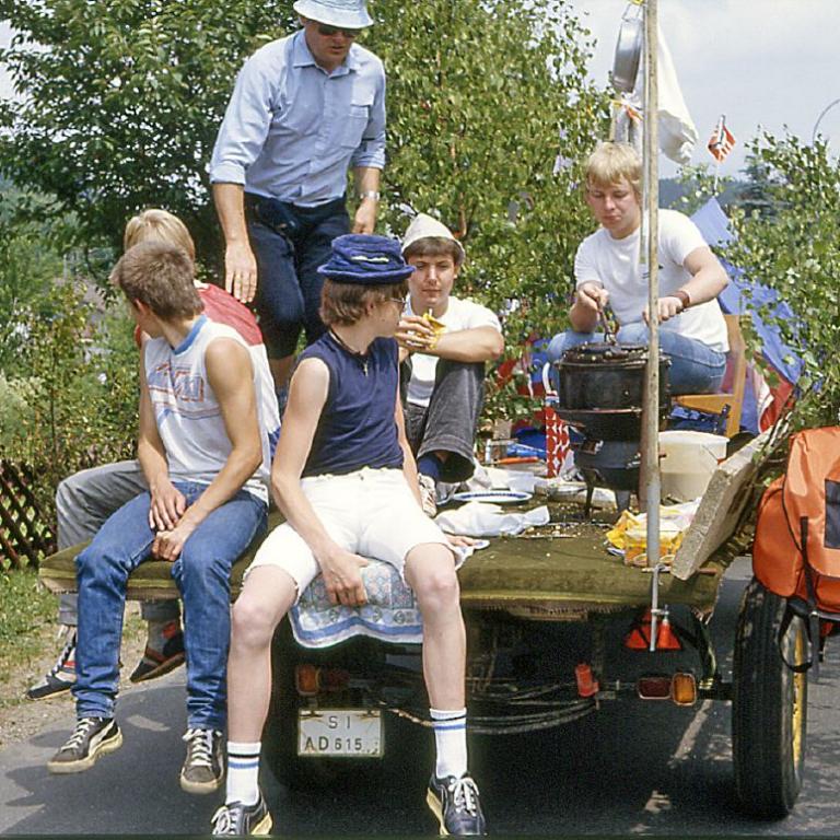 Der Beitrag der SGV-Abteilung waren eine Kindergruppe, ein Wagen der Wanderjugendund ein Festwagen mit der Schusterbude mit vielen bekannten Gesichtern.