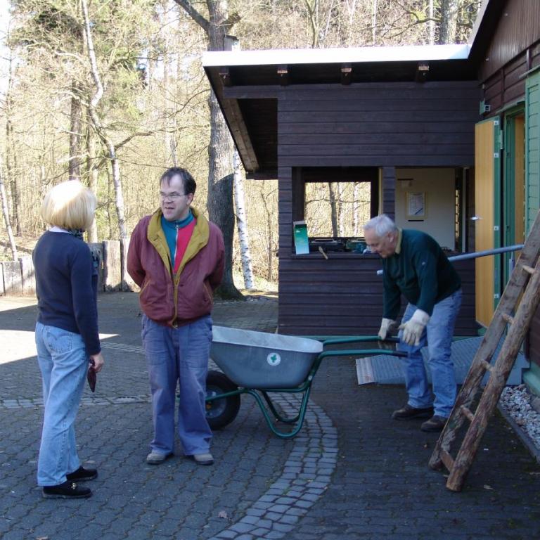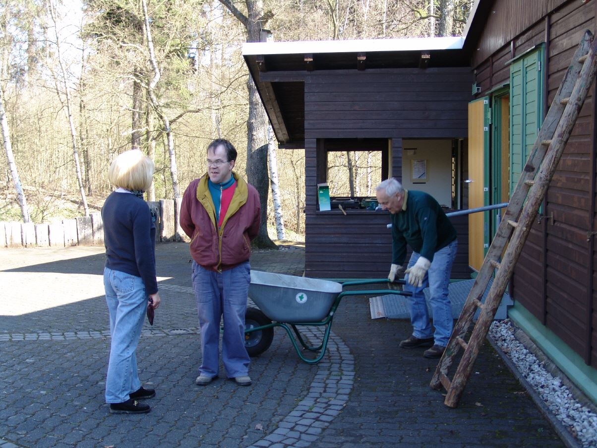 Rund ums Wanderheim gibt es immer etwas zu tun- fleißige Helfer beim Arbeitseinsatz