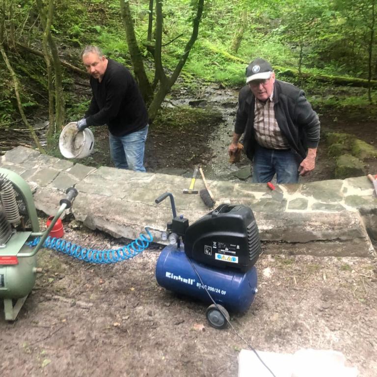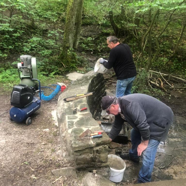 Die Flammersbacher Quelle und der umliegende Bereich ist etwas in die Jahre gekommen. Aus diesem Grund haben Thomas, Reinhard und Oskar kleine Sanierungsarbeiten vorgenommen. Es wurde ein neuer Wassertrog vor dem Wasserauslauf gestellt, die Bodensteine vor der Quelle schön ausgerichtet, die Fugen im Mauerwerk ausgebessert sowie die umstehenden Bänke abgeschliffen und neu gestrichen. Großen Dank an euch!