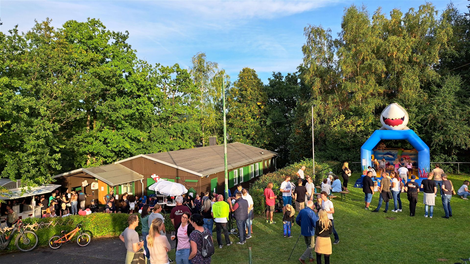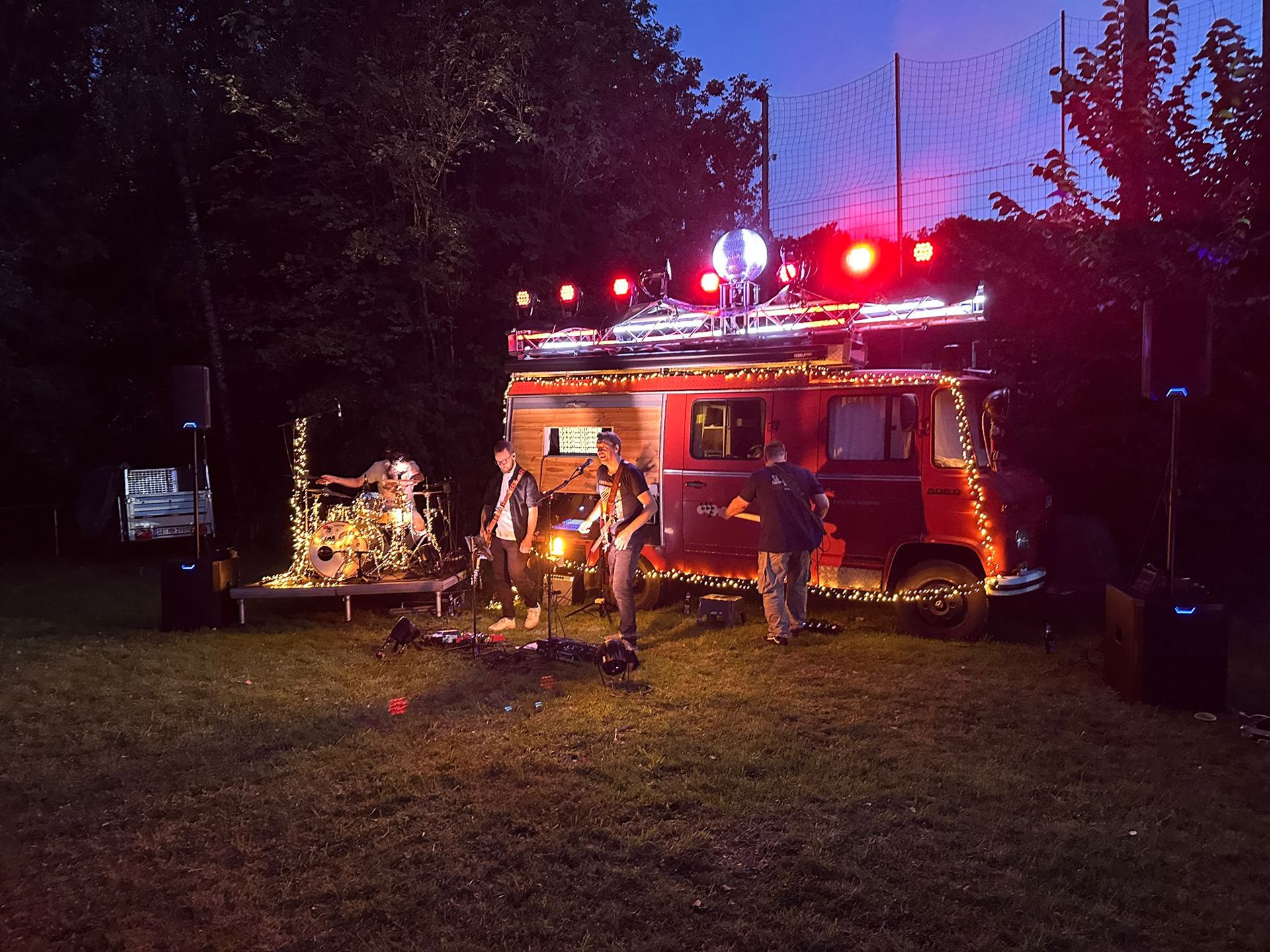 Die zahlreichen Besucher konnten eine Vielzahl an Speisen und Getränken genießen. Die Hüpfburg und viele andere angebotene Spiele haben gerade viele junge Familien mit ihren Kindern zum Fest gelockt und alle konnten einen entspannten Nachmittag bei uns verbringen. Der Abend war dann noch mit einem Highlight versehen. Die Wilnsdorfer Band KosmikKurier kam mit ihrem Feuerwehr-Oldtimer hat uns mit Live-Musik versorgt. Der Auftritt geschah auf Spendenbasis. Die wirklich reichlichen Spenden gehen an die Kinderinsel der DRK-Kinderklinik.