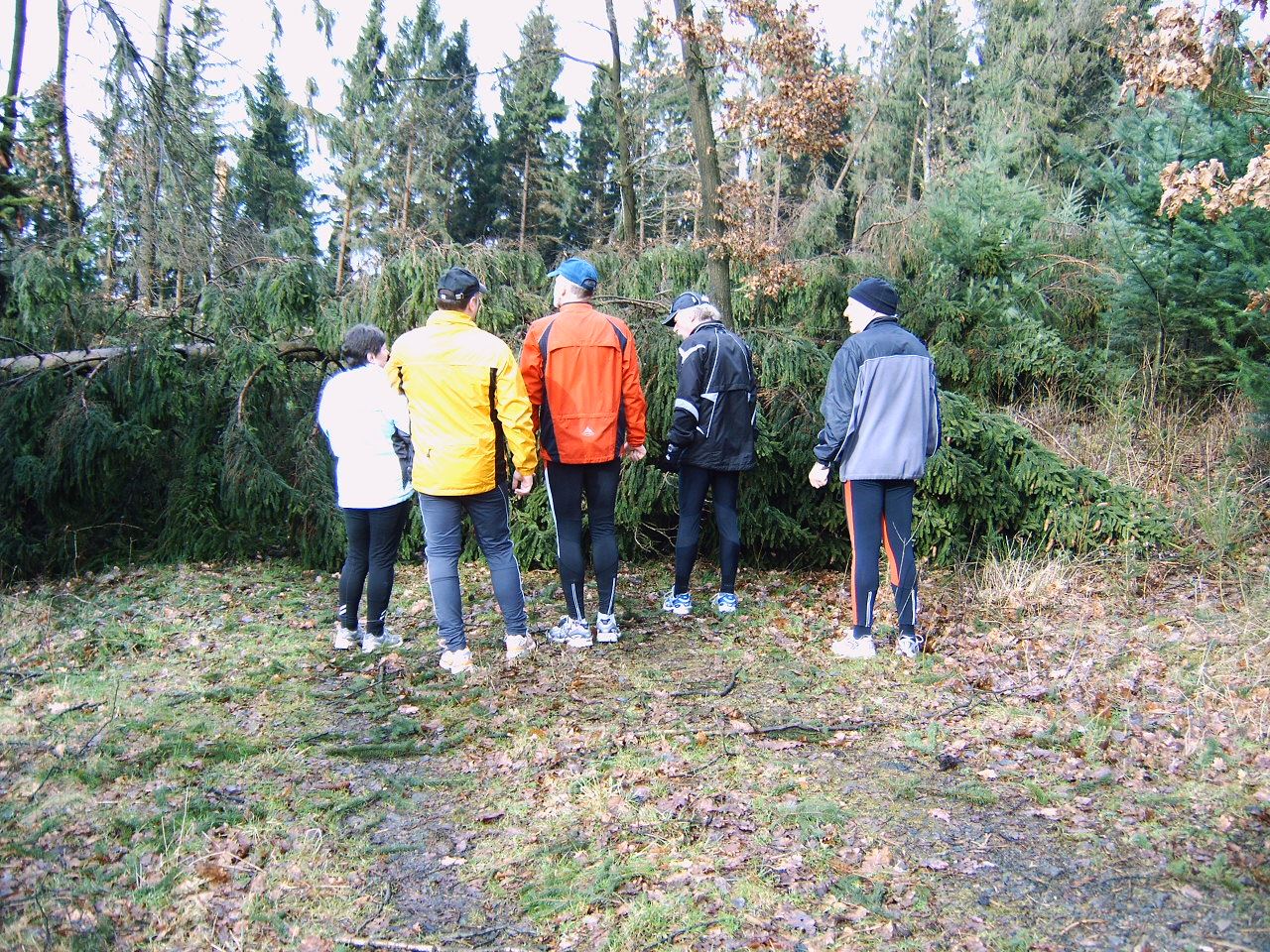 „Familie S… (der Mann) wurde aufgefordert, die Straße zu verlassen, da er hier den umstürzenden 35-Meter-Bäumen zuschaute. Ferner wurde die Familie aufmerksam gemacht, dass bei ihnen im Haus durch die Bäume Lebensgefahr besteht. Das Gebäude wollten sie aber nicht verlassen. Am nächsten Morgen konnte dann festgestellt werden, dass die Bäume um das Haus herum gefallen waren und wie durch ein Wunder das Haus nicht beschädigt wurde.“