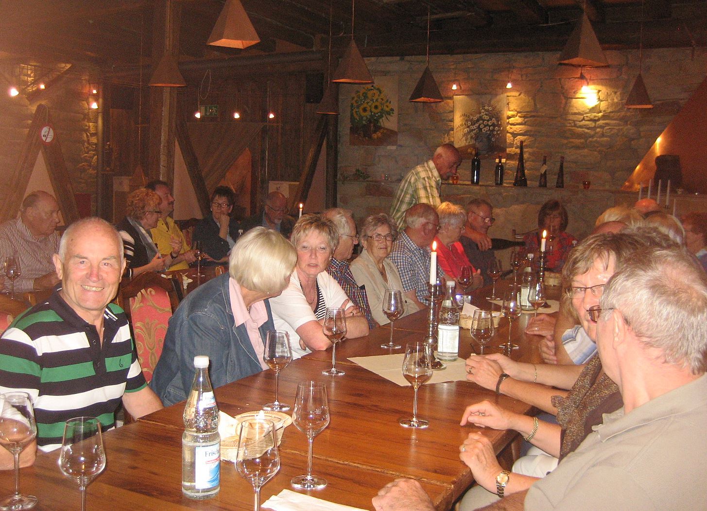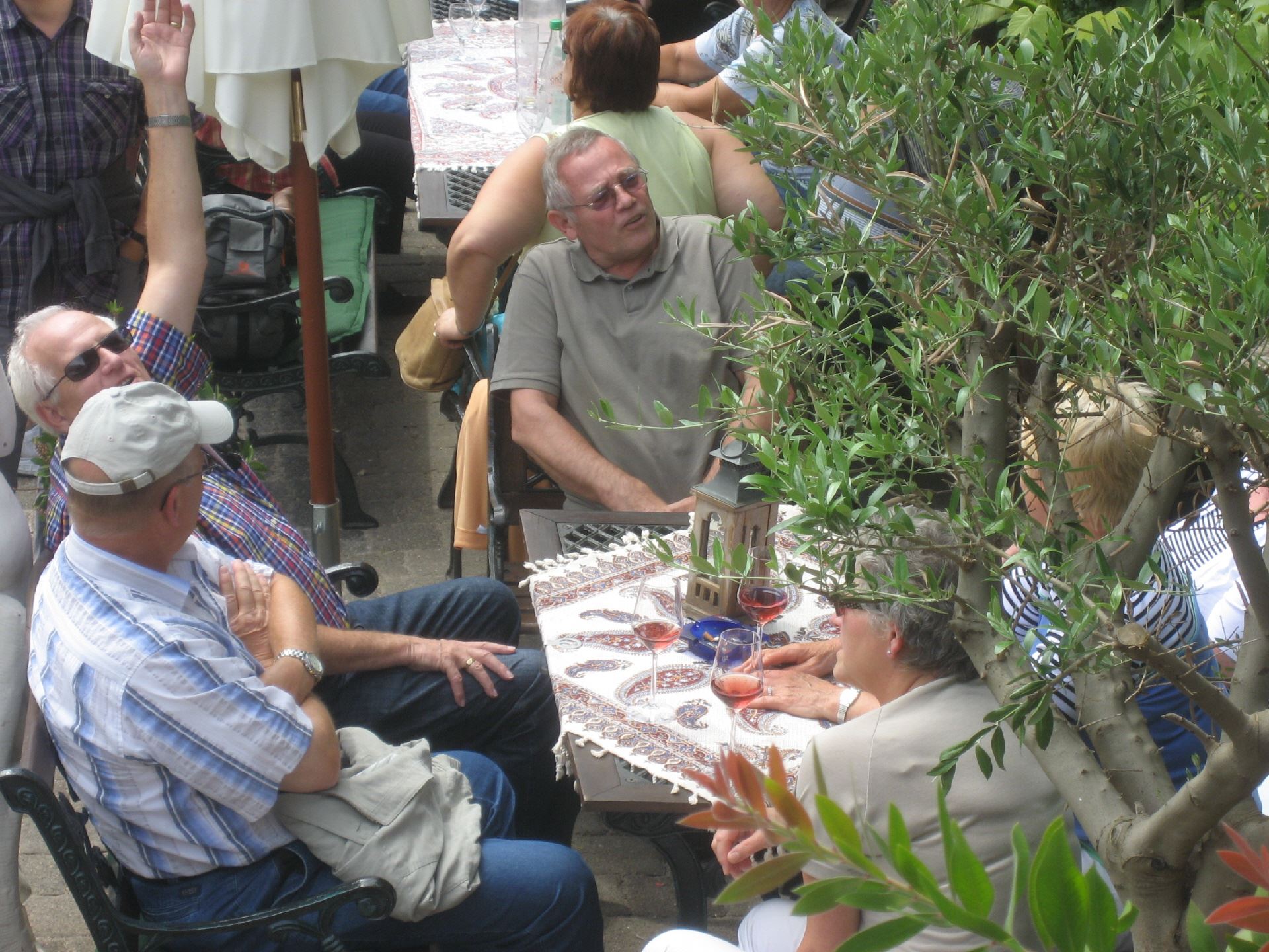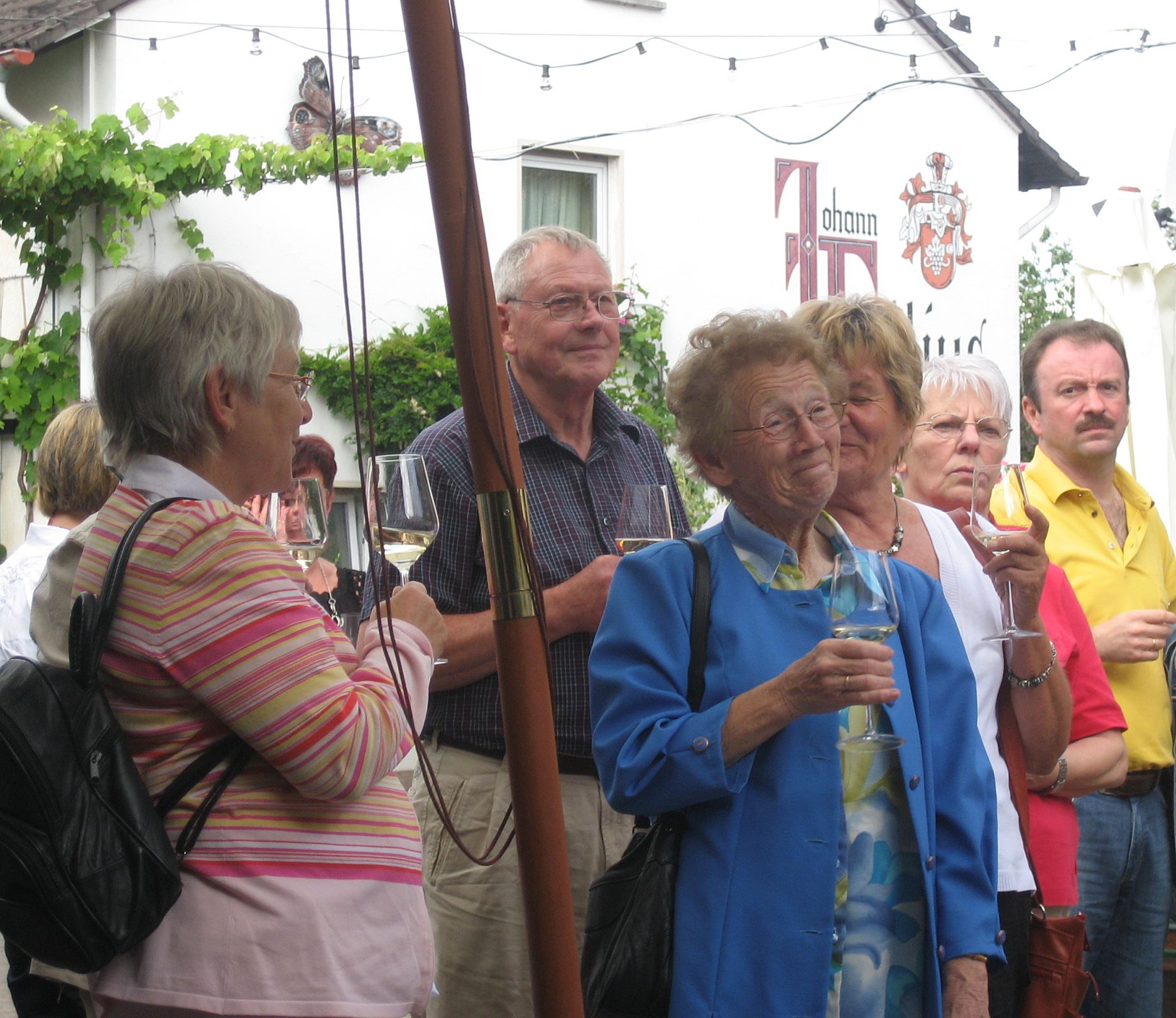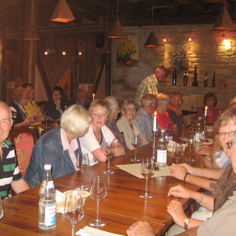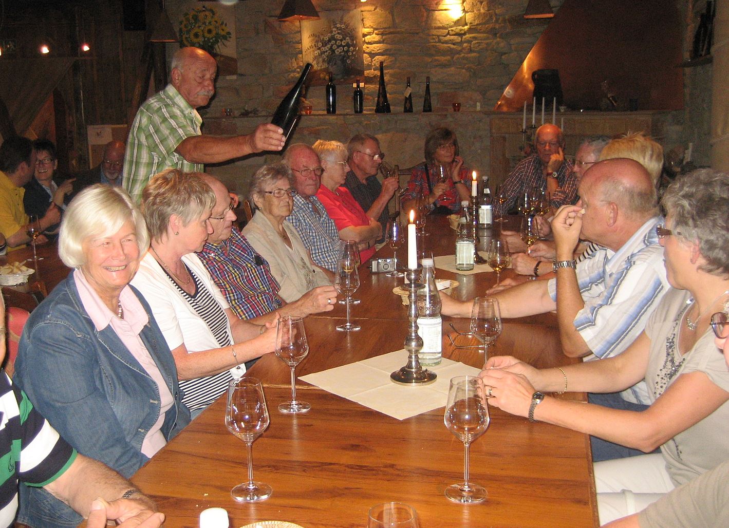 Der Jahresausflug des Singkreises führte uns nach Bad Sobernheim ins Nahetal. Auf einem der schönsten Winzerhöfe Deutschlands - dem Weingut Tullius - wurden wir mit einem Tussecco empfangen. Interessante Verkostungen von Rot- und Weißweinen schlossen sich an. Zwischendurch stärkten wir uns am schmackhaften Bratenbuffet. Nach der Besichtigung vom Winzerhof mit seinem Barriquekeller, dem Refugium und dem Faßkeller ging es mit dem IDEAL-Reisebus weiter zur Kaffeepause in romantische Städtchen Bad Münster am Stein. Durch das Salinental und vorbei an Bad Kreuznach kamen wir um 20 Uhr wieder in Flammersbach an.